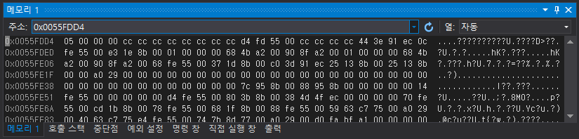 2. 메뉴 - 디버그 - 창 - 메모리 - 메모리 로 메모리 창을 엽니다.