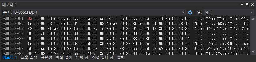 주소 값 변화를 확인하는 방법(VS 2019)