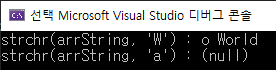printf("strchr(arrString, 'W') : %s\n", pCh1);