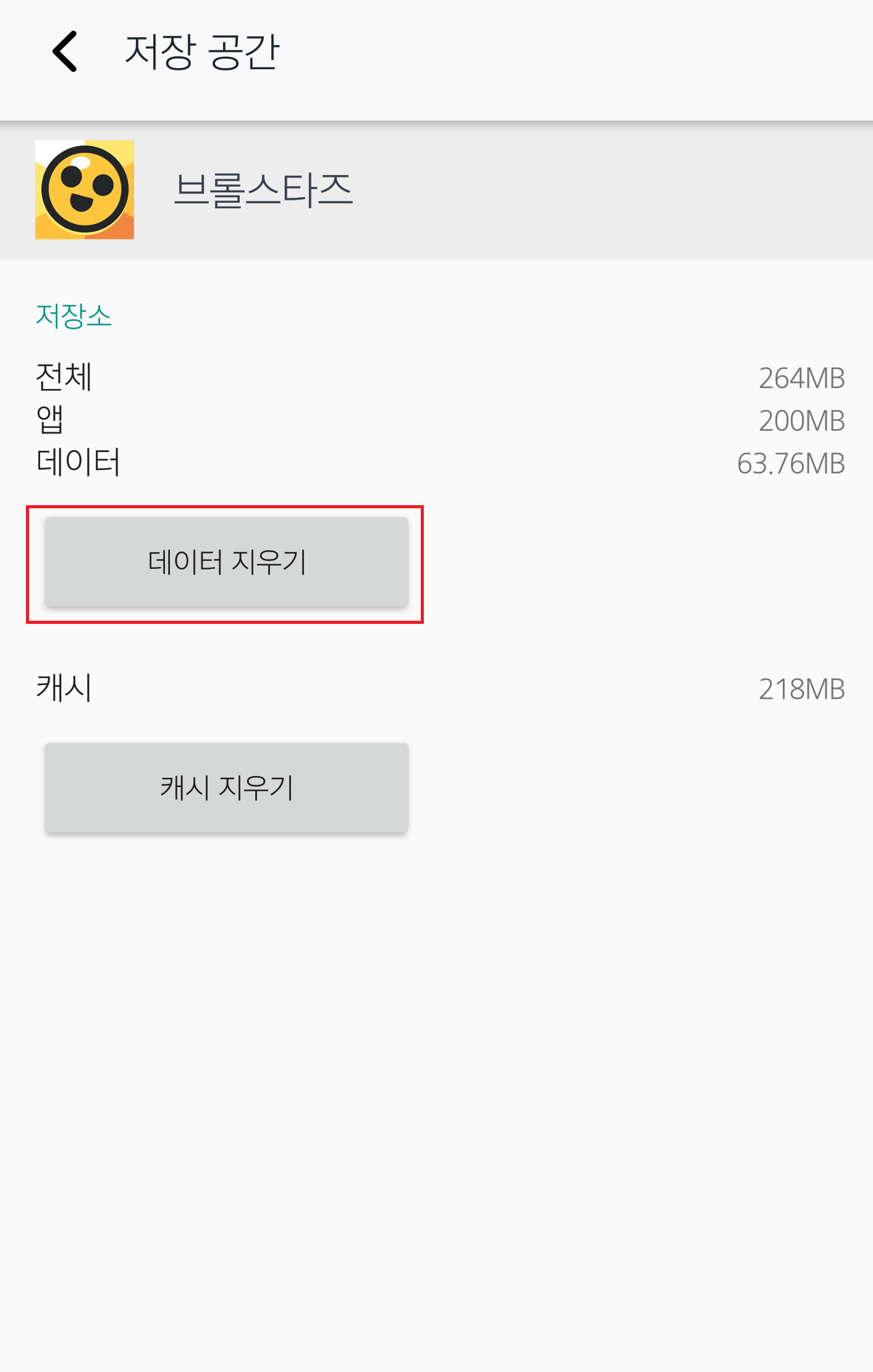 일단 설정에 들어가 브롤스타즈의 애플리케이션 정보에서 데이터를 삭제합니다.