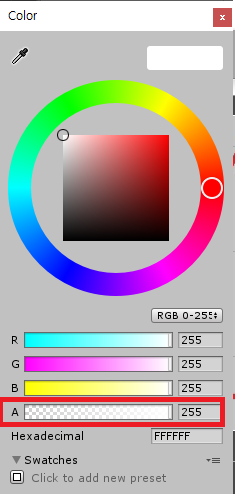 color설정창을 열어서 알파값을 변경하면 됩니다.