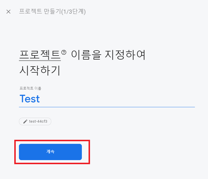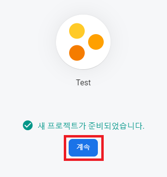 프로젝트 이름을 지정한 후 "계속" 버튼을 클릭합니다.