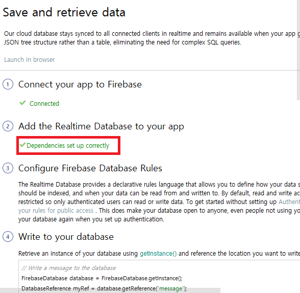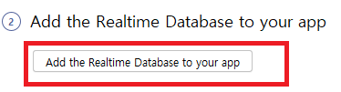 2번은 아직 체크가 안되었기 때문에 Add to Realtime Database to your app을 클릭합니다.