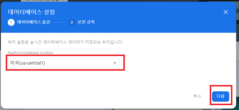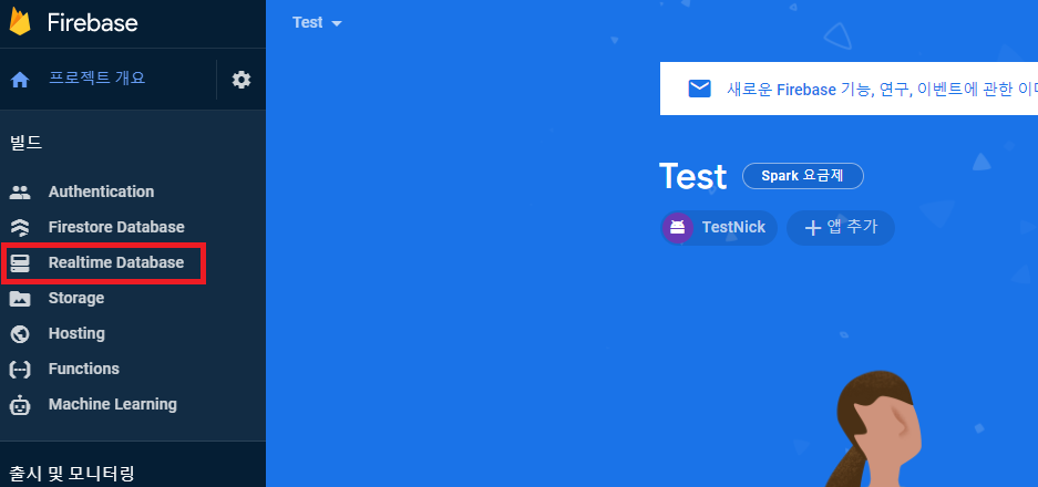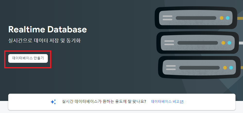 왼쪽에 Firestore Database와 Realtime Database가 있는데, 저는 Realtime Database로 셋팅해보겠습니다.