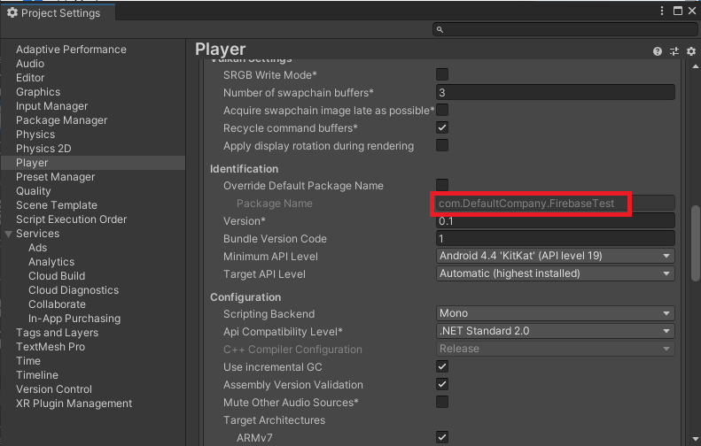 유니티 ProjectSettings에 패키지네임을 적으면 됩니다.
