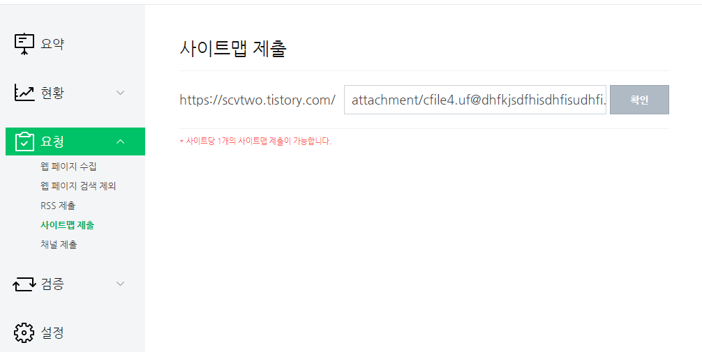 이제 티스토리에 다운로드한 sitemap을 등록해야 합니다.