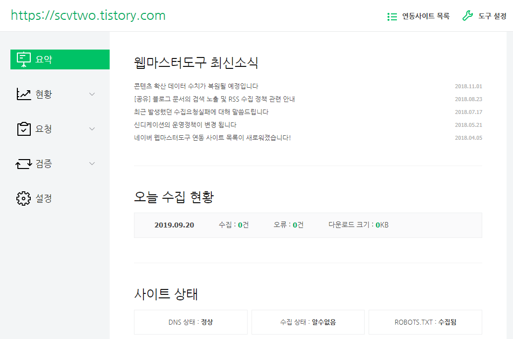 다시 네이버 웹마스터 도구 웹페이지로 돌아갑니다.
