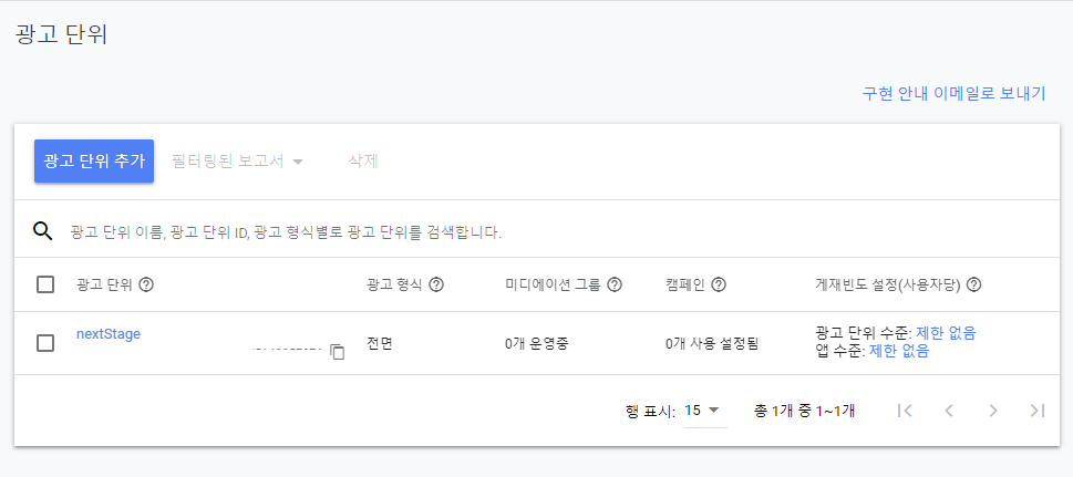 광고 단위 이름을 입력 후 "광고 단위 만들기" 버튼을 누릅니다.