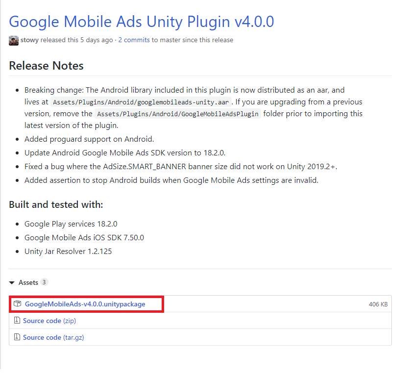 Unity에서 앱을 제작 중인 AdMob 게시자를 위한 모바일 광고 SDK입니다.