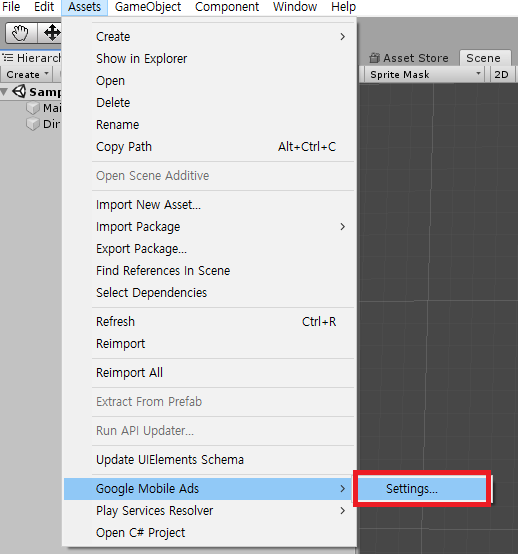 Assets(애셋) > Google Mobile Ads > Settings