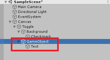 그리고 참고로 토글 내 영역 외에도 더 넓게 클릭 시 영향을 받게 하고 싶다면 Toogle하위에 오브젝트를 생성하면 됩니다.