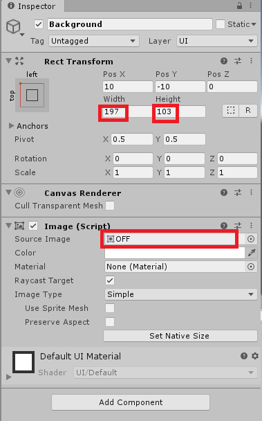 그리고 Background 오브젝트에 OFF이미지를 넣어줍니다.