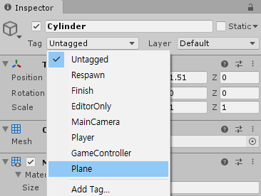 Plane 오브젝트에 태그를 변경해야 합니다.