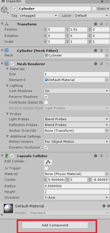 그렇기 때문에 Cylinder의 초기 위치를 지정합니다.