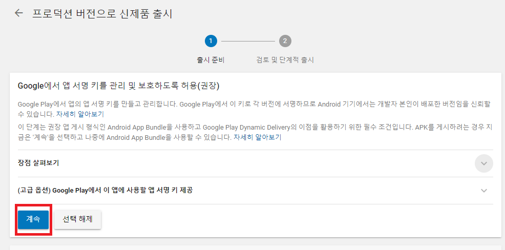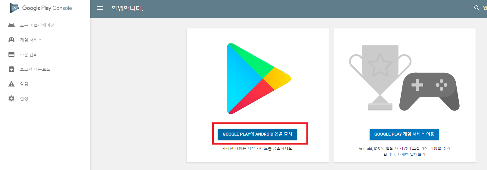 GOOGLE PLAY에 ANDROID 앱을 출시 버튼을 누릅니다.