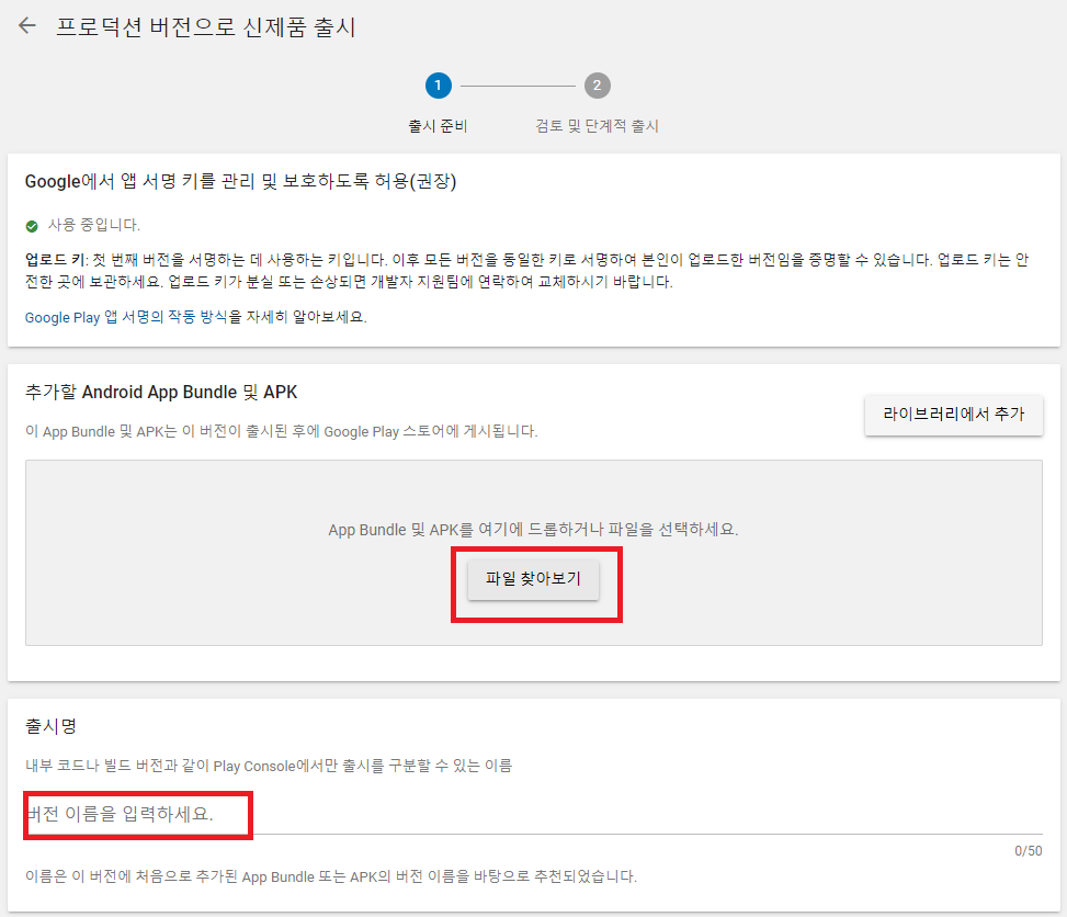 apk를 등록합니다.