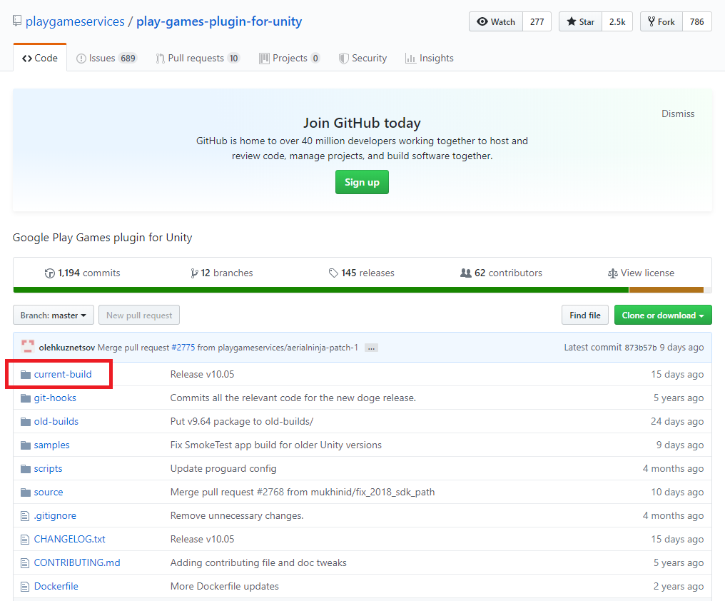 여기에 접속하여, Google Play Games plugin for Unity 를 눌러 GitHub에 접속합니다.