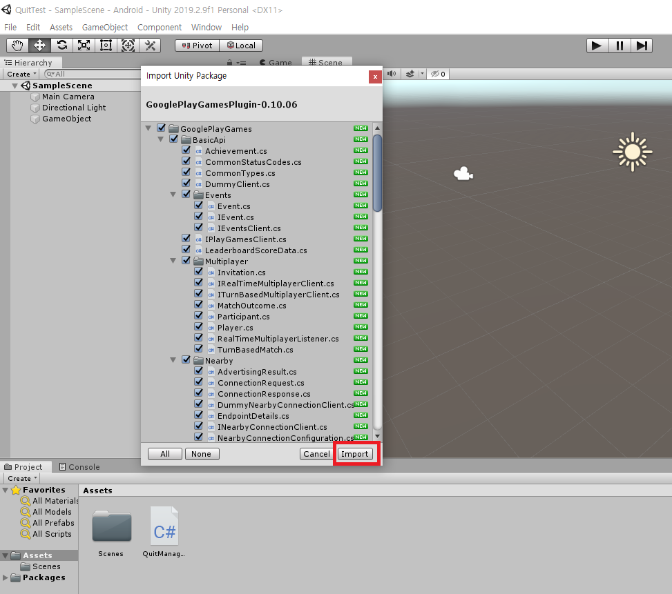 GooglePlayGamesPlugin-0.10.06.unitypackage 파일을 끌어서 해당 프로젝트에 넣으면 됩니다.