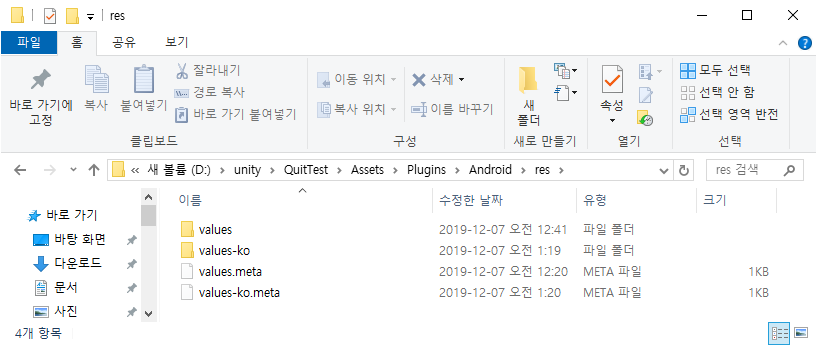 D:\unity\QuitTest\Assets\Plugins\Android\res 이 폴더 안에 국가별 폴더를 만들어줍니다.