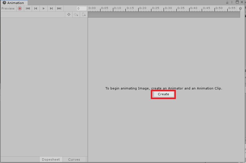 애니메이션 창에서 "Create"버튼을 누릅니다.