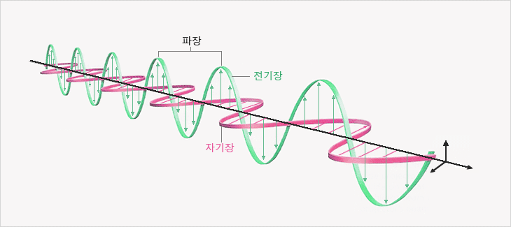 전자파(電磁波, ElectroMagnetic Wave)란 전기장과 자기장의 두 가지 성분으로 구성되며, 주기적으로 세기가 변화하는 전자기장이 공간 속으로 전파해 나가는 파동 현상으로 원래 명칭은 전기 자기 파로서 이것을 줄여서 전자파라고 합니다. 또한, 전자파는 공간을 빛의 속도로 전파하고 있습니다. 전자파의 발생은 자연적인 것과 인공적인 것이 분류할 수 있습니다. 자연적인 것으로는 태양 흑점이 폭발하여 지구로 날아오는 다양한 종류의 전자파가 있으며, 인공적인 것은 전자레인지, 휴대폰, 컴퓨터, TV, 전기장판, 고압전선 등이 있습니다.(출처: https://emf.kca.kr/)