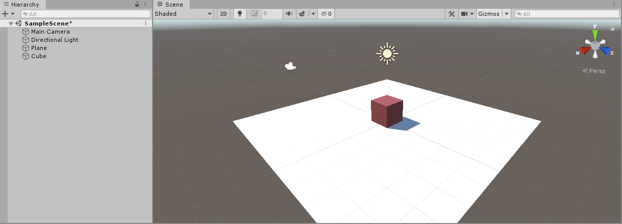 바닥(Plane)과 따라갈 오브젝트(Cube)를 생성합니다.